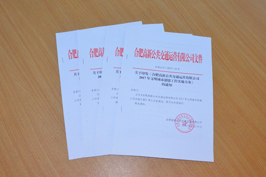 為鞏固和擴大高新公交公司文明創(chuàng )建工作成果,高新公交公司制定印發(fā)了《2017年文明城市創(chuàng )建工作實(shí)施方案》,進(jìn)一步明確了創(chuàng )建指導思想和工作目標,著(zhù)力加強四個(gè)方面的工作,為確保公司2017年各項目標任務(wù)圓滿(mǎn)完成提供堅強思想保證。