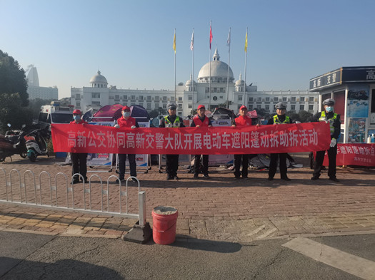 另一方面,高新公交主動(dòng)與高新交警大隊取得聯(lián)系,12月6日安排志愿者,前往黃山路與科學(xué)大道交口處的電動(dòng)車(chē)遮陽(yáng)篷助拆點(diǎn),協(xié)同交警大隊開(kāi)展為期五天的電動(dòng)自行車(chē)遮陽(yáng)篷勸拆助拆活動(dòng)。穿著(zhù)紅色馬甲的高新公交志愿者積極配合交警的指揮,利用車(chē)群等待紅綠燈的間隙,對安裝遮陽(yáng)篷的車(chē)主進(jìn)行勸導,引導車(chē)主來(lái)到助拆臺登記、排隊,完成拆除工作。