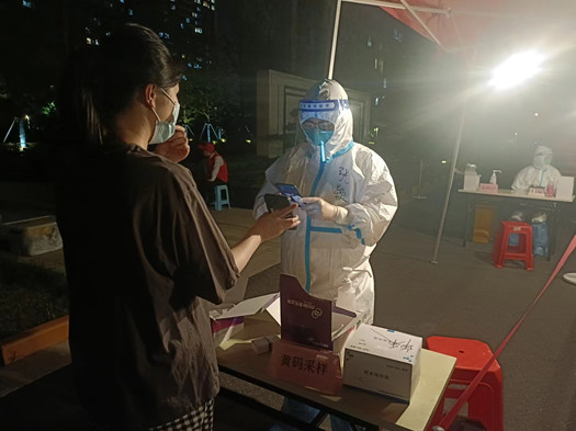 在各核酸檢測現場(chǎng),他們身著(zhù)防護服,耐心組織引導現場(chǎng)群眾有序排隊、掃碼登記,并提醒群眾保持距離、做好防護,確保整個(gè)核酸檢測工作快速、有序進(jìn)行;認真核對受檢群眾的身份信息,測量體溫、錄入信息、對其進(jìn)行樣本采集,確保做到應檢盡檢。