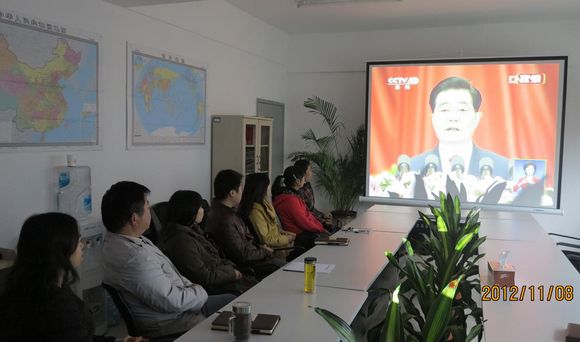 所有人員全神貫注,認真聽(tīng)取中共中央總書(shū)記國家主席胡錦濤所做的報告。大家時(shí)而凝神思考、時(shí)而拿出紙筆記錄、時(shí)而掌聲響起。在整個(gè)觀(guān)看報告過(guò)程中,全場(chǎng)氛圍濃厚、熱烈。