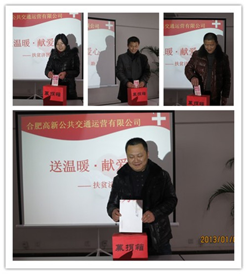 為大力弘揚“扶貧濟困、助人為樂(lè )”的中華傳統美德,幫助高新區困難群眾過(guò)上一個(gè)快樂(lè )祥和的春節,1月4日,高新公交積極舉辦“送溫暖?獻愛(ài)心”慈善捐助活動(dòng)。此次慈善活動(dòng)的開(kāi)展得到公司領(lǐng)導的高度重視和員工的熱情參與,大家積極響應號召,紛紛慷慨解囊,共募得善款8665.5元,用實(shí)際行動(dòng)踐行“服務(wù)人民,奉獻社會(huì )”的精神,在冬日為困難的群眾送去一份溫暖。