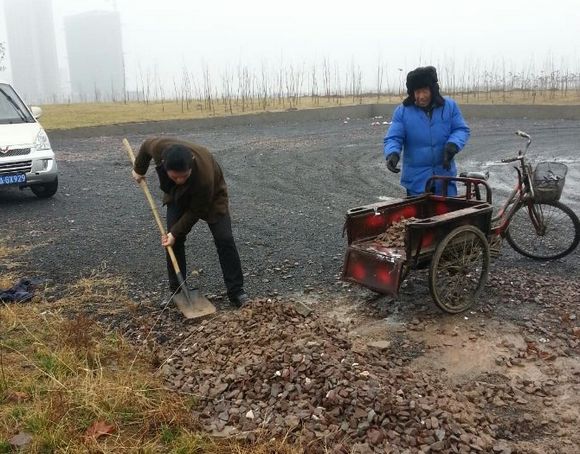 填補作業(yè)接近尾聲,路面已基本填補完成。