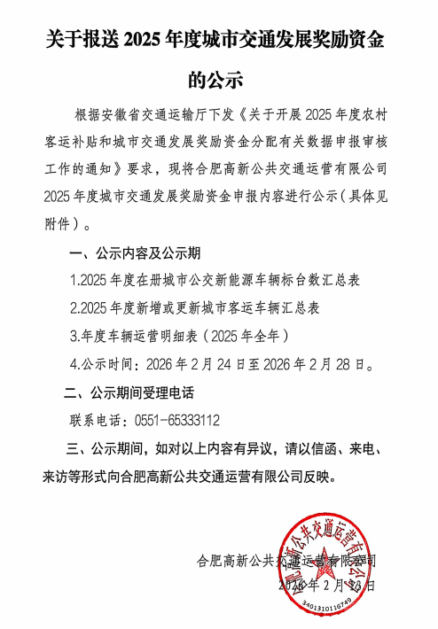 合肥高新公共交通運營(yíng)有限公司2025年度審計報告服務(wù)采購項目成交結果公告